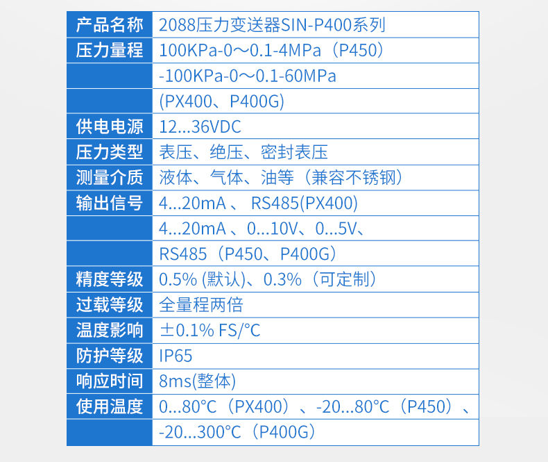 聯測_SIN-P400_2088型壓力變送器_精度0.5%榔頭型_可帶顯示 P400全數字電路保證精度,保證長期零點和線性穩定,現場液晶顯示,多種量程選擇,防雷擊,防射頻干擾,液晶顯示可通過按鍵調整零點和量程,方便用戶調試。